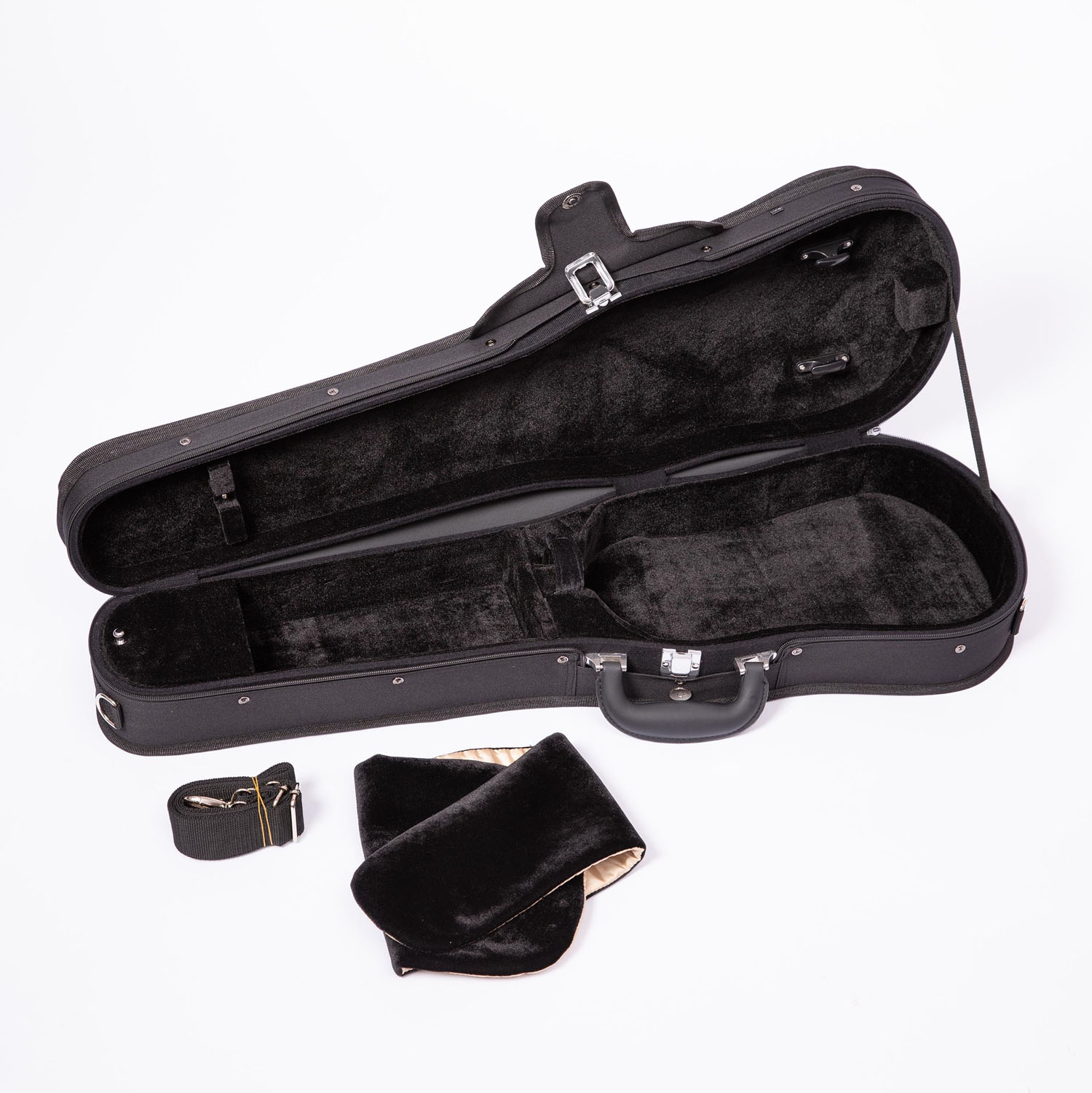 Der Viola-Formkoffer ist mit einem robusten Holzkern und einer Schwebelagerung ausgestattet - so ist Ihr Instrument darin optimal geschützt. Er bietet Platz für bis zu zwei Bögen und verfügt über ein zusätzliches Zubehörfach. Dank der beiden Rucksackgurte lässt sich dieser Koffer bequem zu Fuß, in öffentlichen Verkehrsmitteln oder auf dem Fahrrad transportieren. Durch seine schlanke Violinform ist das Gewicht des Koffers angenehm leicht.